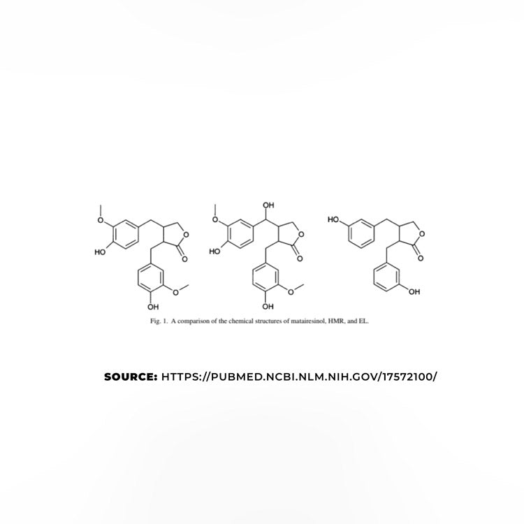 Norwegian Spruce knotwood contains mostly the lignan hydroxymatairesinol (HMR). Hydroxymatairesinol then gets converted to matairesinol (MAT) through hydrogenolysis and then mostly into enterolactone (ENL) and some enterodiol (ED) through bacteria in the gut. (56) Norwegian Spruce knotwood also contains secoisolariciresinol (SECO), matairesinol (MAT) and lariciresinol (LARI). (50) The chemical structure of HMR is closely related to MAT, and, therefore provides an efficient precursor of ENL. (13)